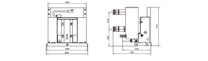 該戶內(nèi)高壓真空斷路器采用操動機構(gòu)與斷路器本體一體式設計,既可做為固定安裝單元,也可配有專用推進機構(gòu),組成手車單元作用。